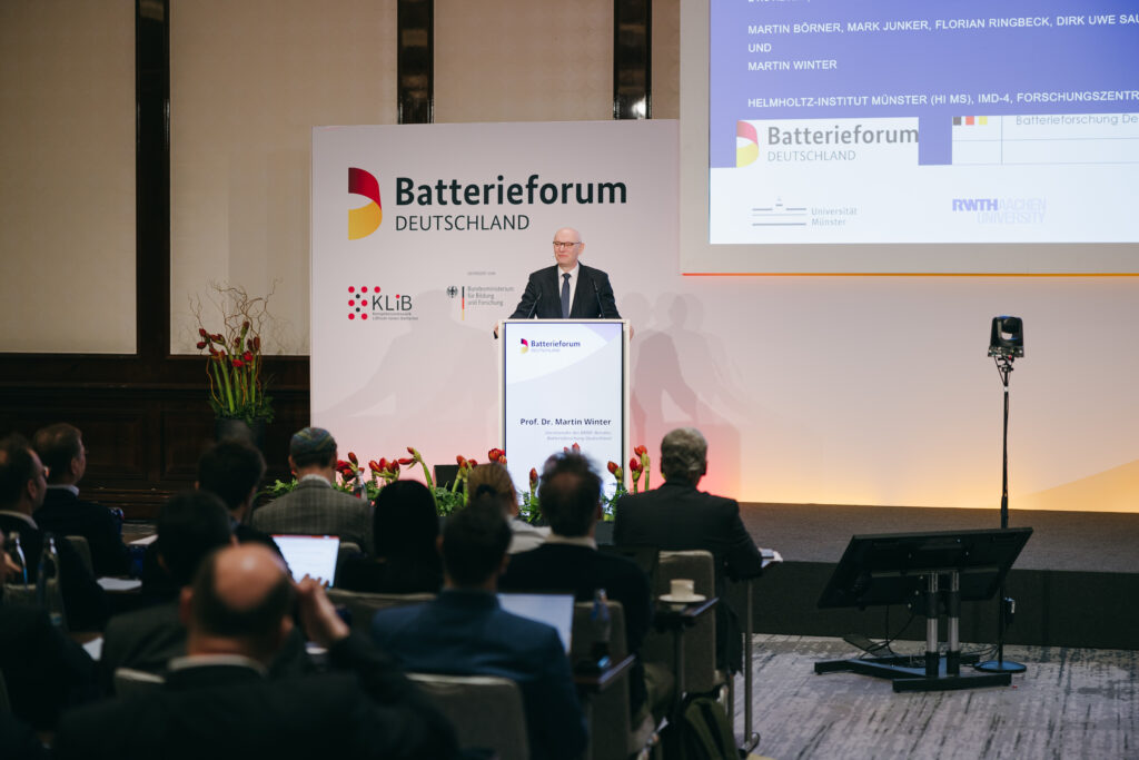 Im Januar 2024 veranstaltete das Kompetenznetzwerk Lithium-Ionen-Batterien (KLiB) e. V. mit Unterstützung des Bundesministeriums für Bildung und Forschung (BMBF) zum 12. Mal das Batterieforum Deutschland. Als besonderer Gast beehrte uns in diesem Jahr die Bundesministerin für Bildung und Forschung Bettina Stark-Watzinger. Wir danken allen Referent:innen und Moderator:innen für die spannenden Sessions und natürlich den Teilnehmer:innen, den Sponsoren, dem BMFTR-Beirat Batterieforschung Deutschland und allen, die dieses besondere Event ermöglicht und mitgestaltet haben.