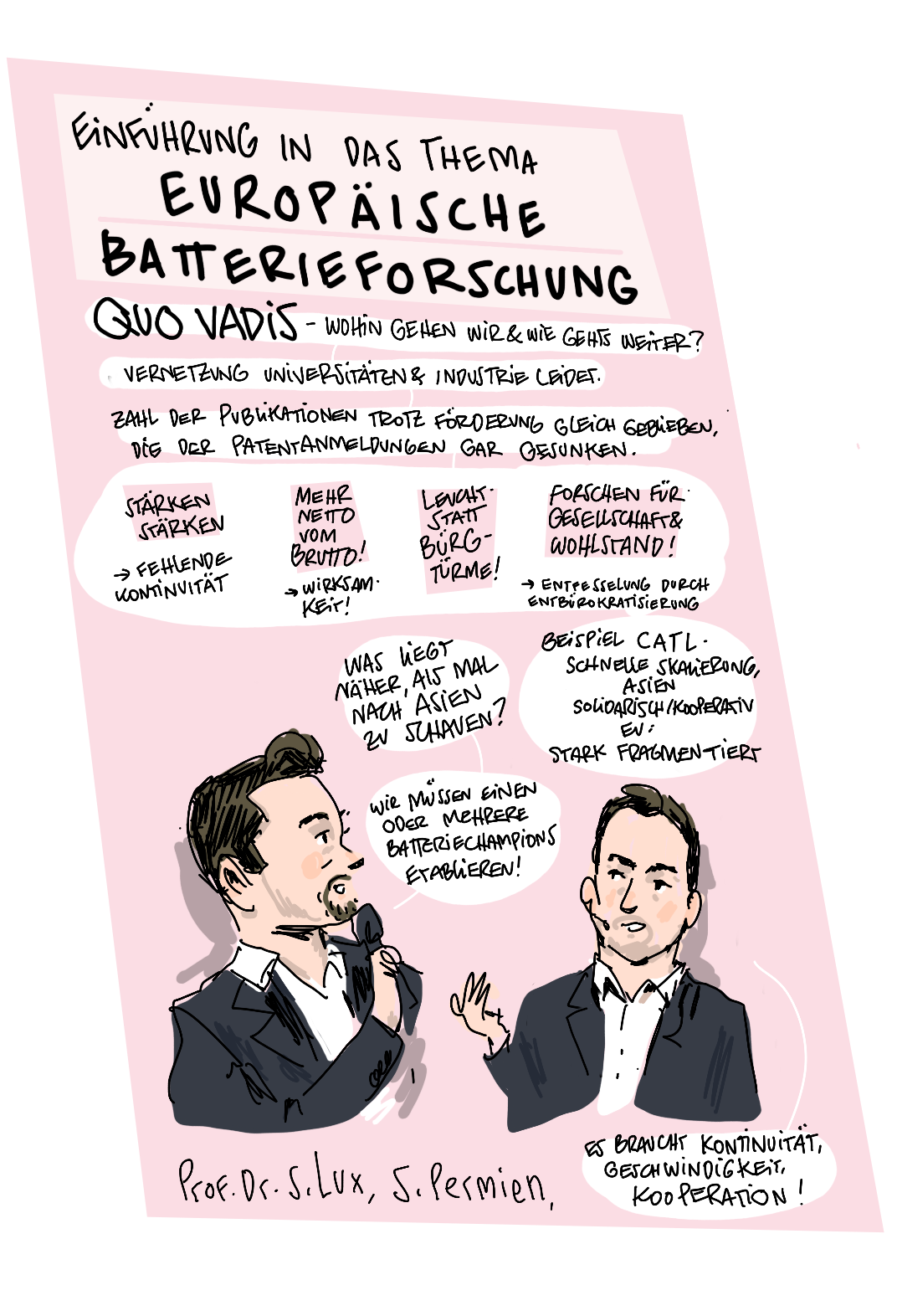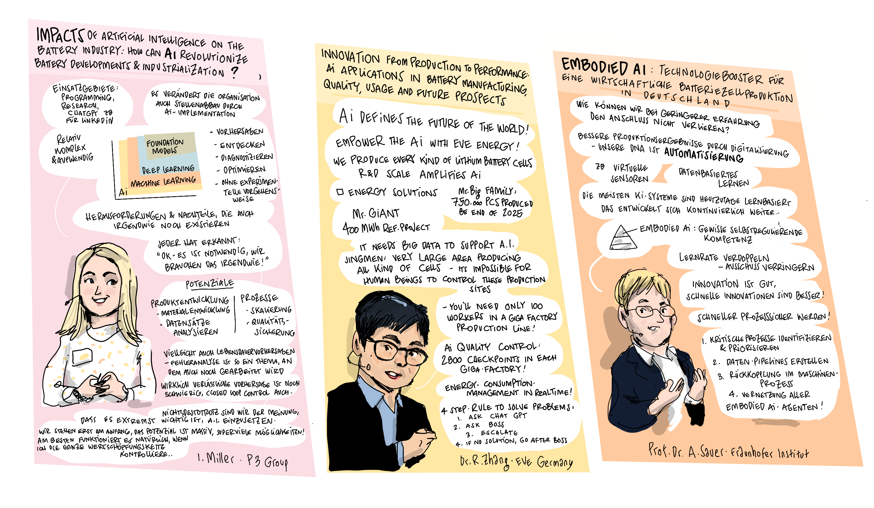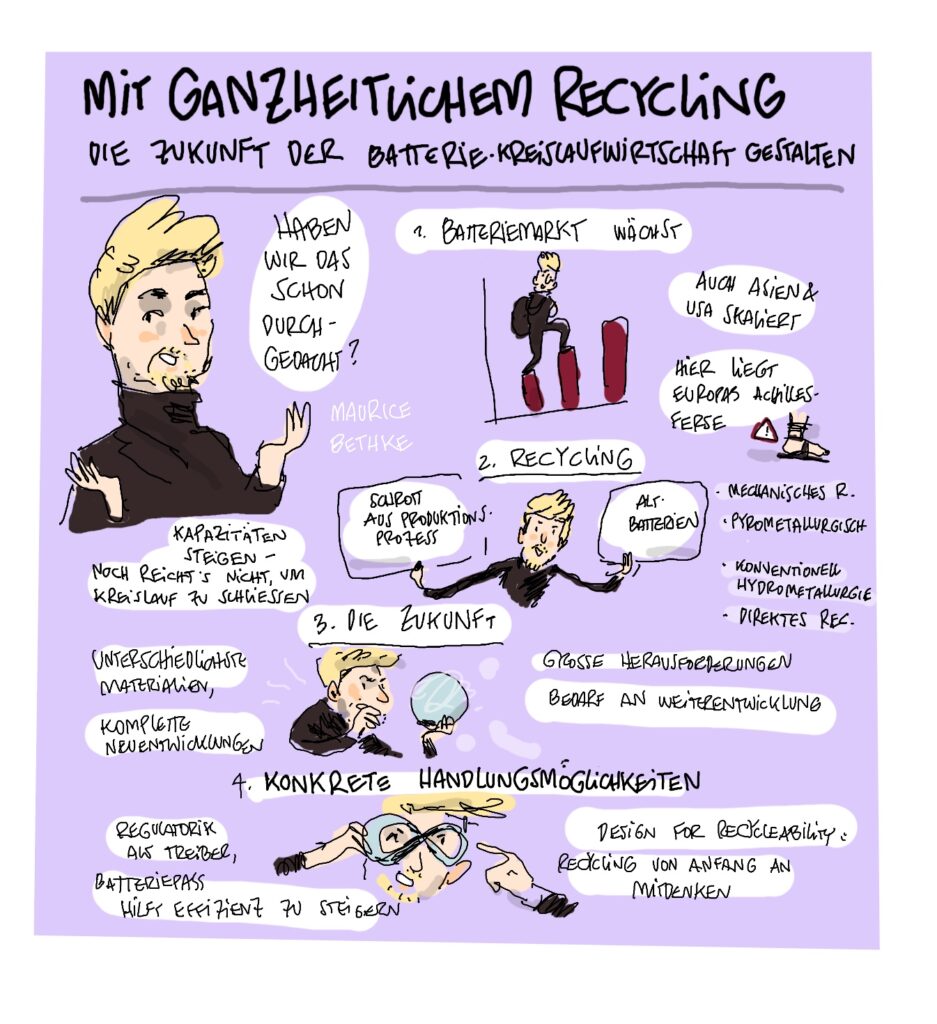 Im Januar 2025 veranstaltete das Kompetenznetzwerk Lithium-Ionen-Batterien (KLiB) e. V. mit Unterstützung des Bundesministeriums für Bildung und Forschung (BMBF) zum 13. Mal das Batterieforum Deutschland. Als besonderer Gast beehrte uns in diesem Jahr der Bundesminister für Bildung und Forschung Cem Özdemir. Zum ersten Mal haben wir die Eindrücke nicht nur von unserem Fotografen Markus Braumann einfangen lassen, sondern auch von dem Hamburger Illustrator Till Lassmann. Wir danken allen Referent:innen und Moderator:innen für die spannenden Sessions und natürlich den Teilnehmer:innen, den Sponsoren, dem BMFTR-Beirat Batterieforschung Deutschland und allen, die dieses besondere Event ermöglicht und mitgestaltet haben.
